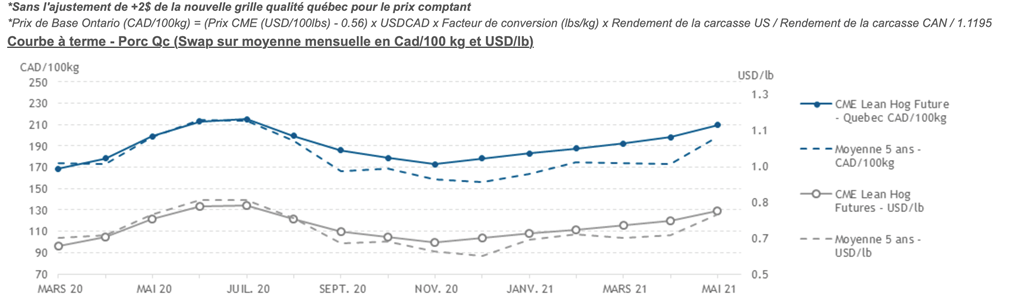 Voici les prix les plus récents sur le marché du porc et des grains: