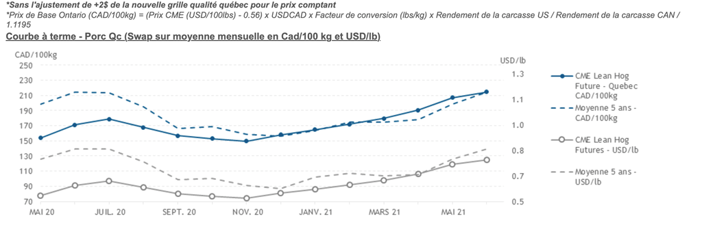 • La découpe de porc aux États-Unis chute à 65.04 USD cent/lb en date d'hier alors que le prix cash se situe à 65.56 USD/lb. C'est la première fois depuis août 2019 qu'on voit la découpe inférieure au prix cash.