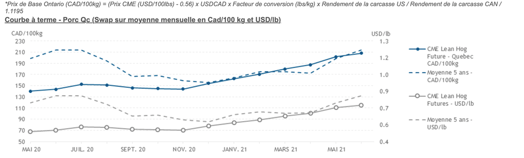 • Le prix des contrats de porc étaient mixtes hier avec un gain notable de 2,95 cents USD/lb (+6,7%) pour mai 2020, des pertes pour les échéances de juin 2021 à février 2020 et des gains pour le reste des échéances futures.