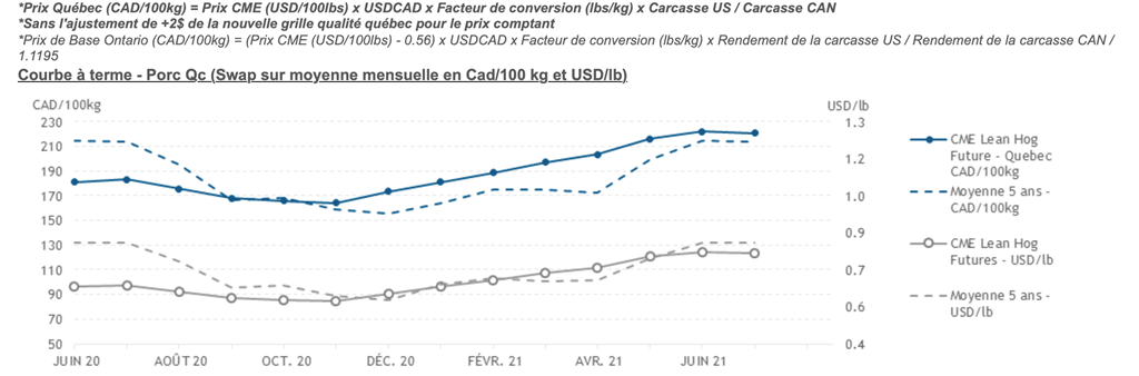 Voici les prix les plus récents sur le marché du porc et des grains: