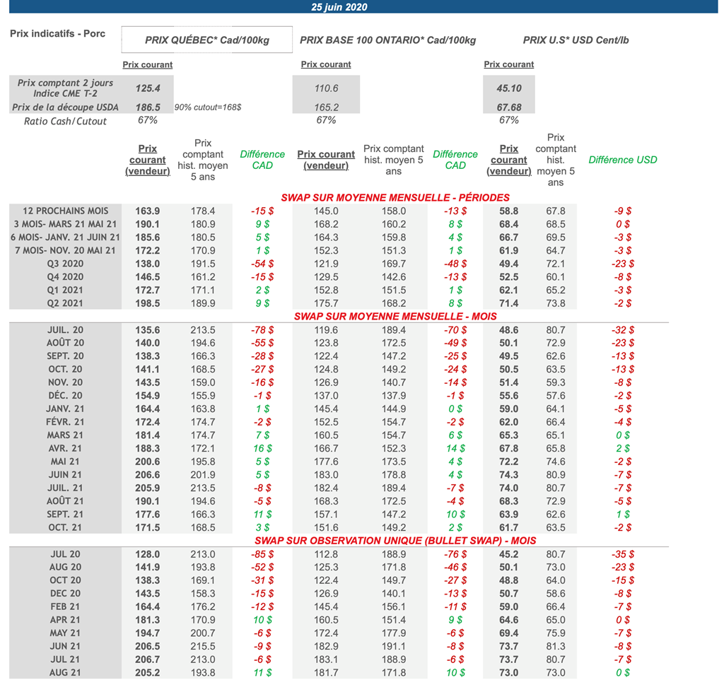 • Les contrats de porc ont montré peu de changement hier sauf pour les trois premiers qui étaient en baisse.