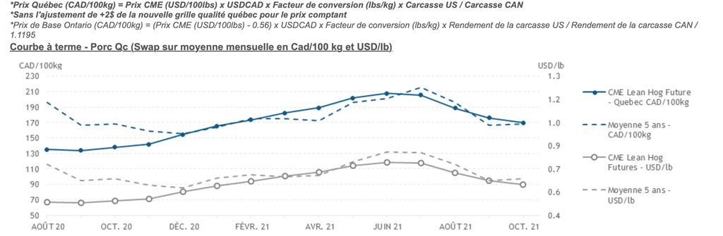 Voici les prix les plus récents sur le marché du porc et des grains: