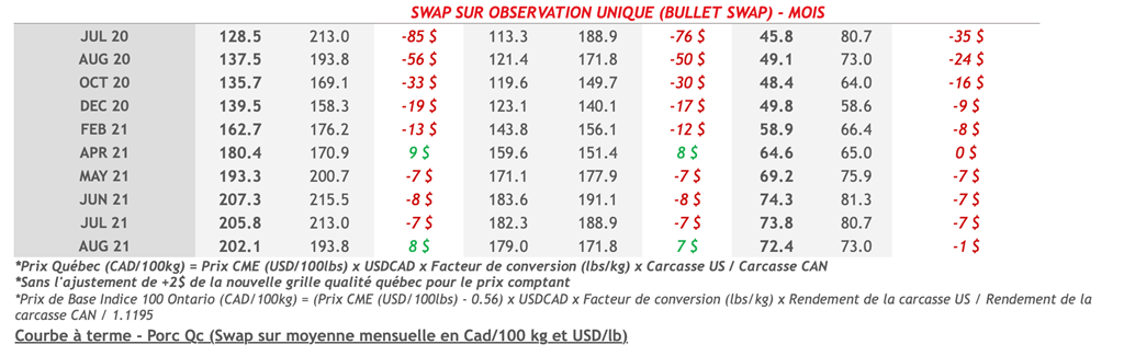 • Lundi, les contrats de porcs ont terminé la journée majoritairement en hausse, tandis que hier, les contrats des échéances à long terme ont continué leur progression et ceux à court terme ont reculé. Le contrat de juillet 2021 expirera aujourd'hui.