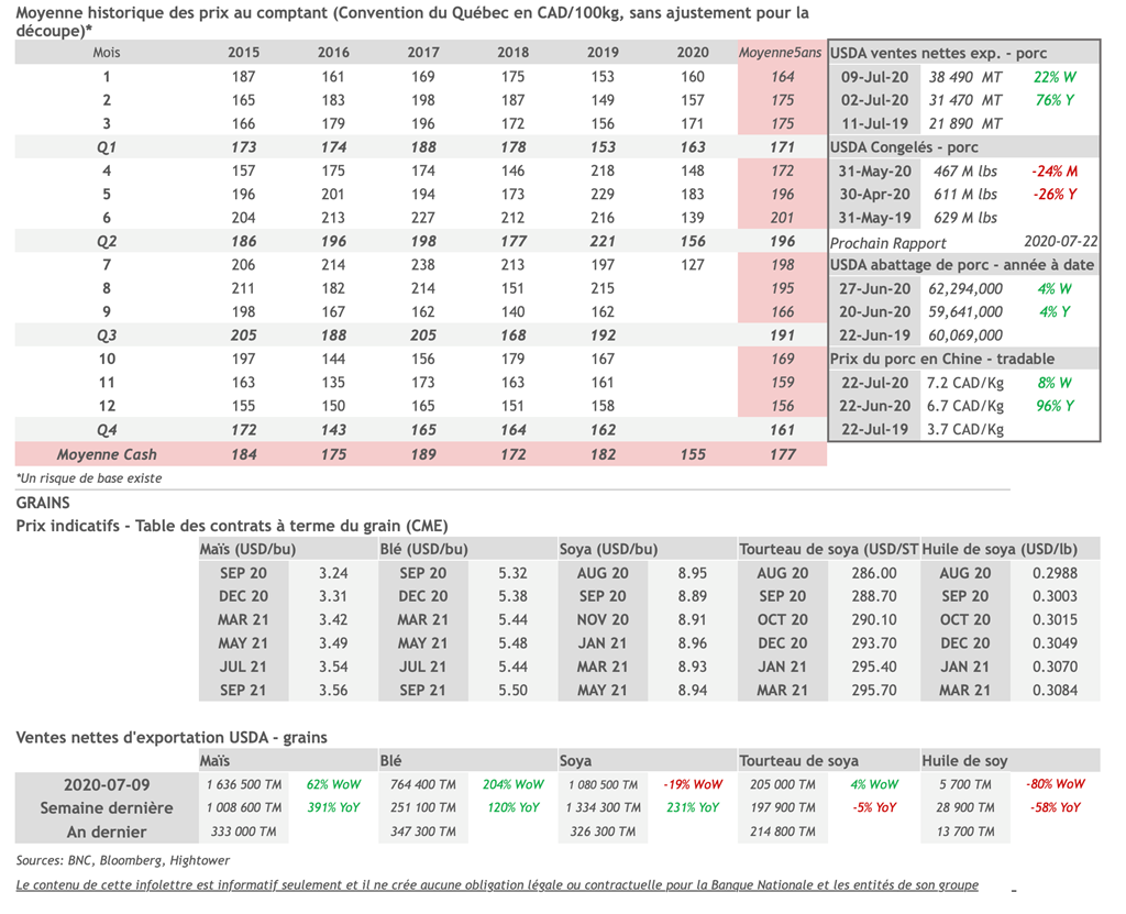 • 23 juillet: USDA — Ventes nettes d’exportations pour les grains et le porc