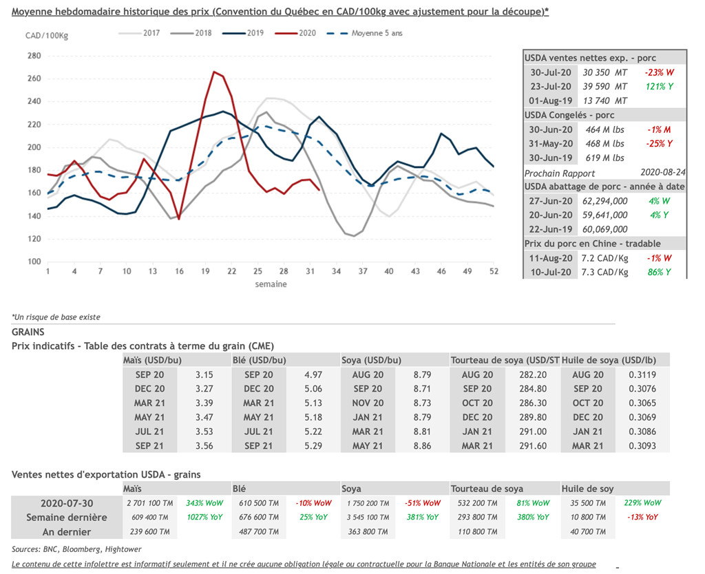 • 13 août: USDA — Ventes nettes d’exportations pour les grains et le porc