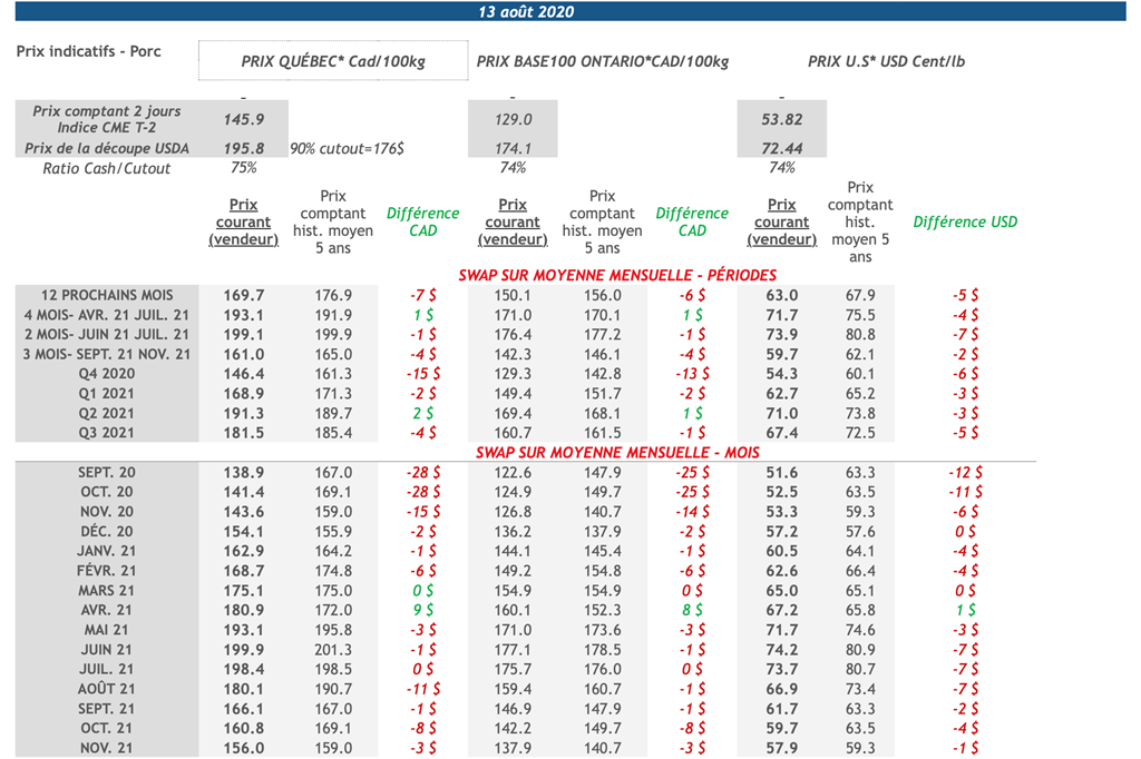 • 20 août: USDA — Ventes nettes d’exportations pour les grains et le porc