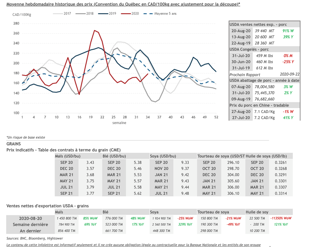 • 3 septembre : USDA — Ventes nettes d’exportations pour les grains et le porc