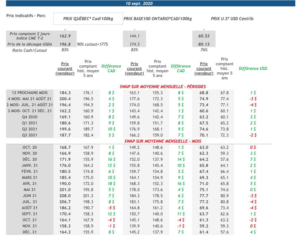 • 11 septembre : USDA — Ventes nettes d’exportations pour les grains et le porc