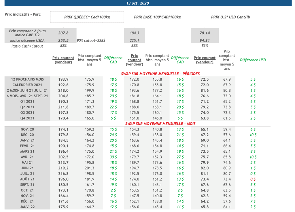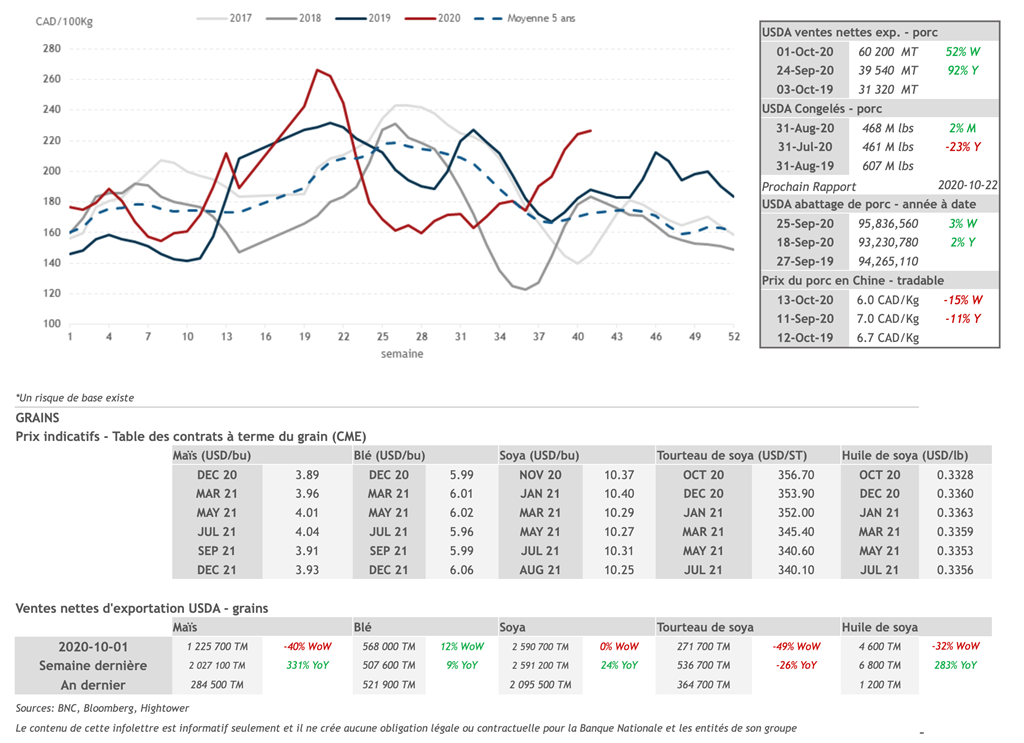 • 16 octobre : USDA — Ventes nettes d’exportations pour les grains et le porc