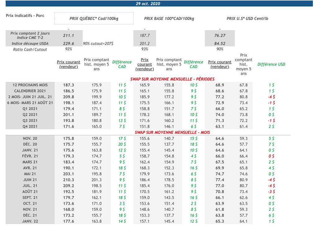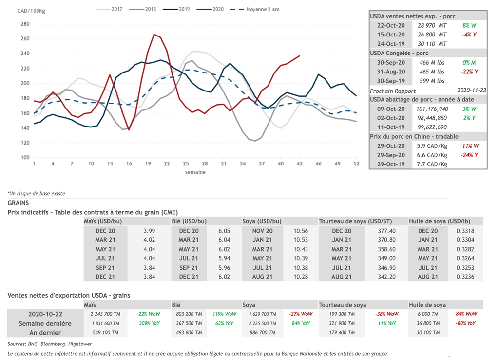 • 5 novembre : USDA — Ventes nettes d’exportations pour les grains et le porc