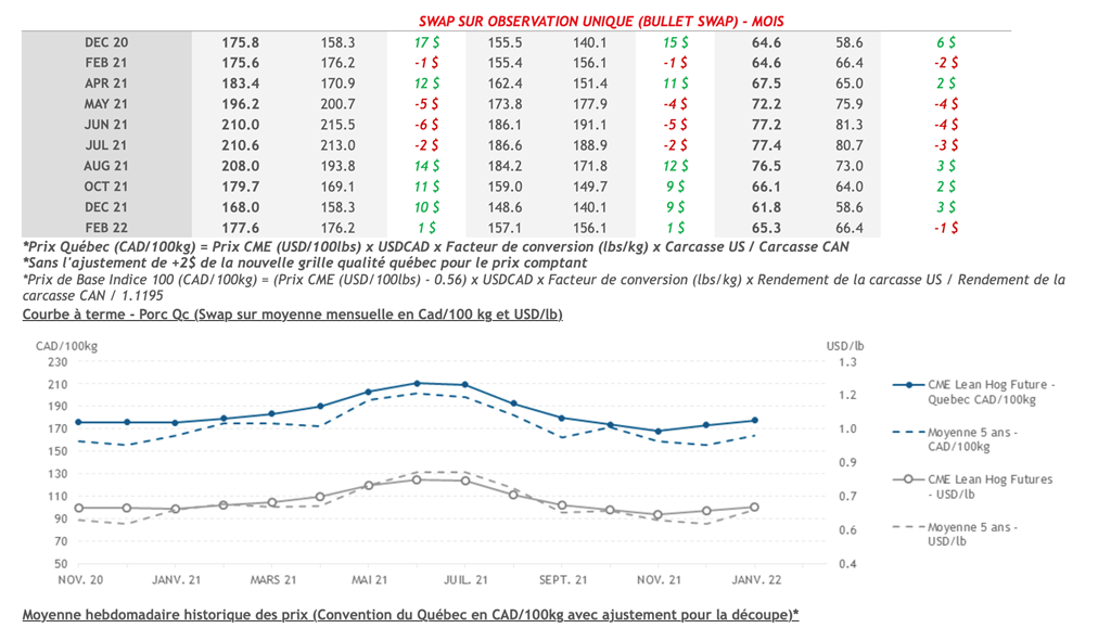 • Les ventes nettes d'exportation de porc aux États-Unis ont atteint 29 000 tonnes cette semaine. Le Mexique était le plus gros acheteur de viande de porc avec 8 400 tonnes, suivi du Japon avec 6 400 tonnes. La Chine se classe au 4e rang cette semaine avec 2 500 tonnes et elle a acheté 1 300 tonnes pour 2021.