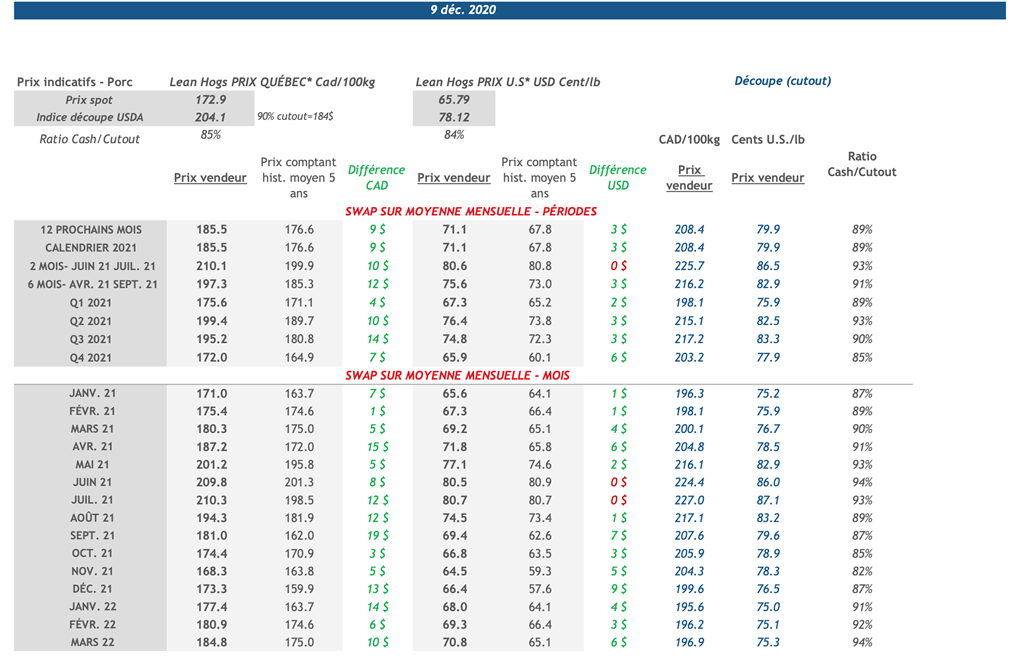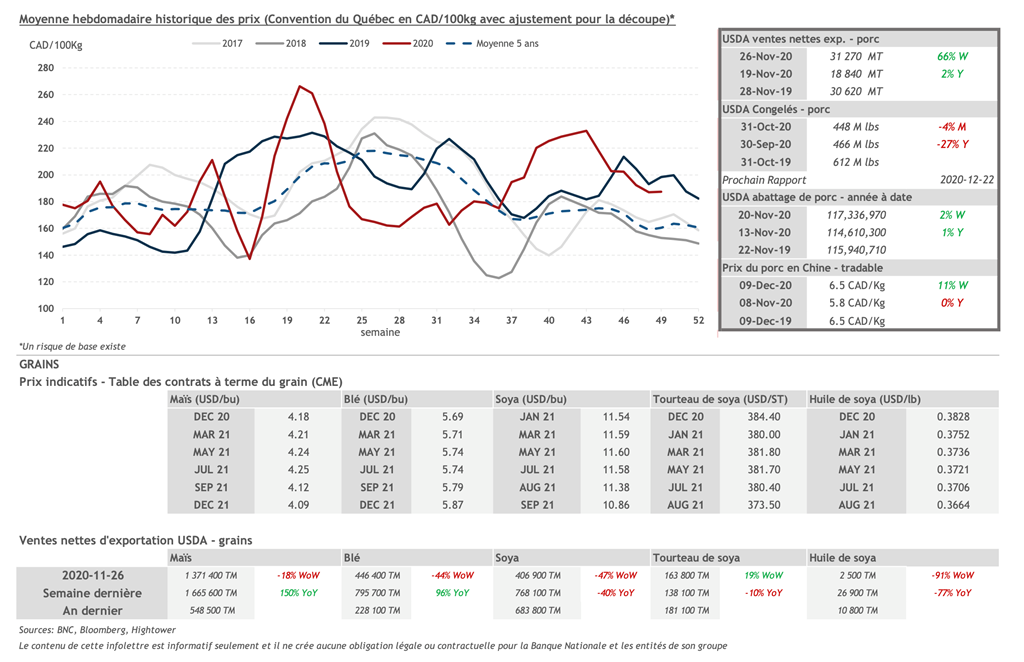 • 10 décembre : USDA — Ventes nettes d’exportations pour les grains et le porc