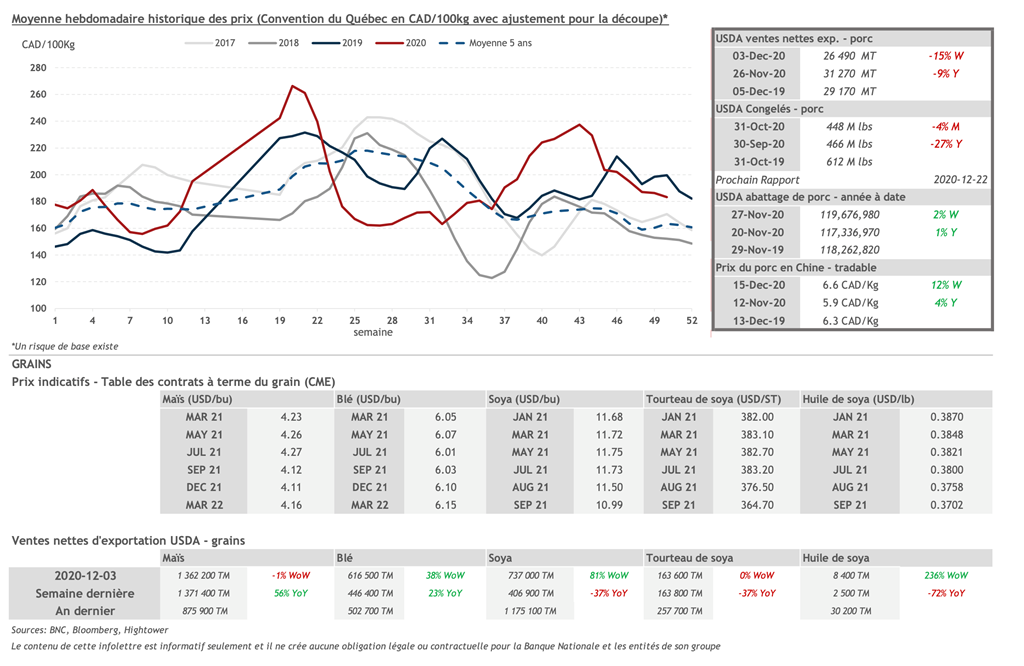 • 17 décembre : USDA — Ventes nettes d’exportations pour les grains et le porc