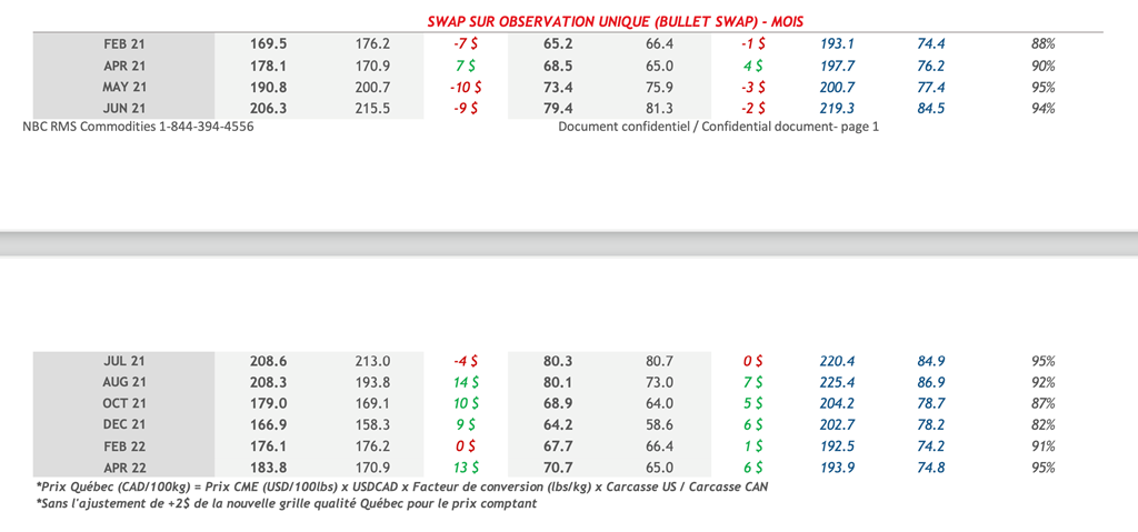 • Les contrats de porc étaient en hausse pour une deuxième journée d’affilée hier à Chicago. La plupart des contrats sont près d’avoir rattrapé les pertes encourues durant les séances boursières de jeudi et vendredi derniers.