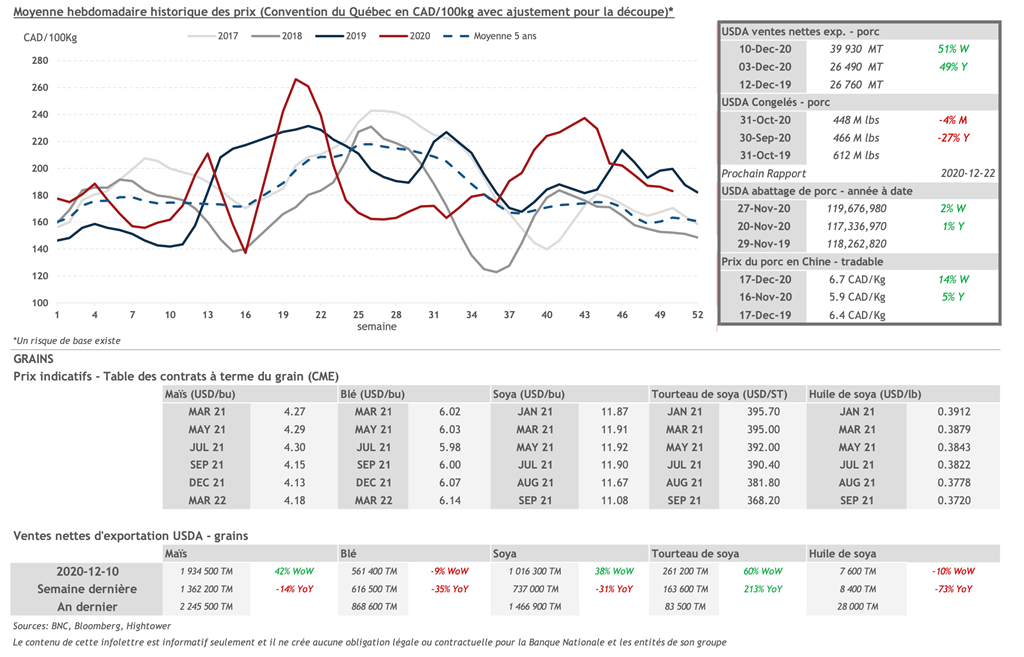 • 24 décembre : USDA — Ventes nettes d’exportations pour les grains et le porc