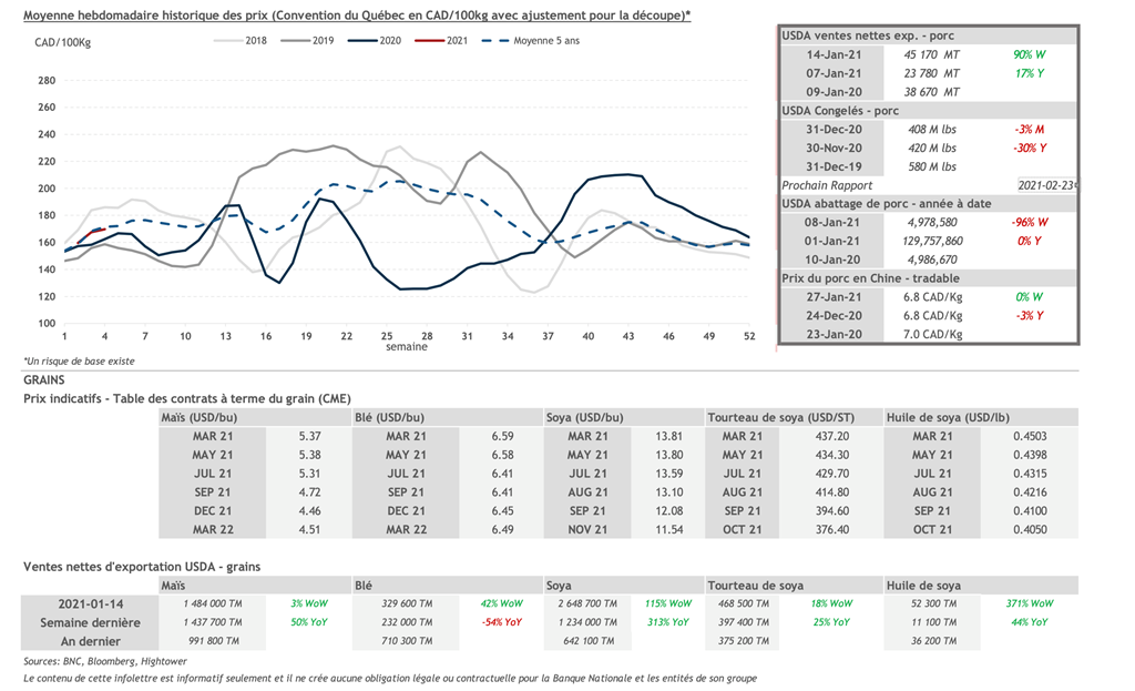 • 28 janvier : USDA — Ventes nettes d’exportations pour les grains et le porc
