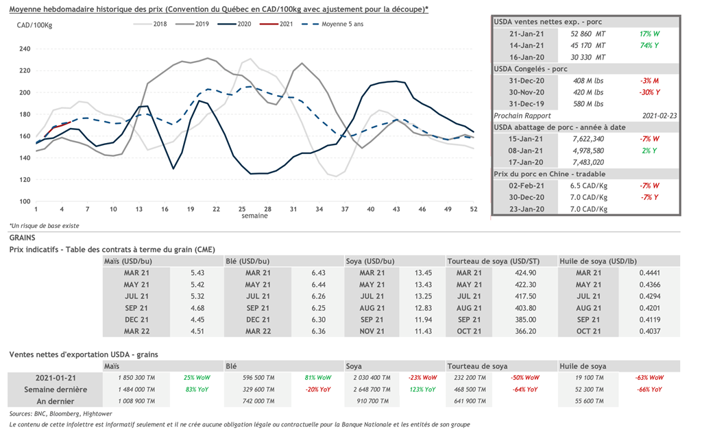 • 4 février : USDA — Ventes nettes d’exportations pour les grains et le porc