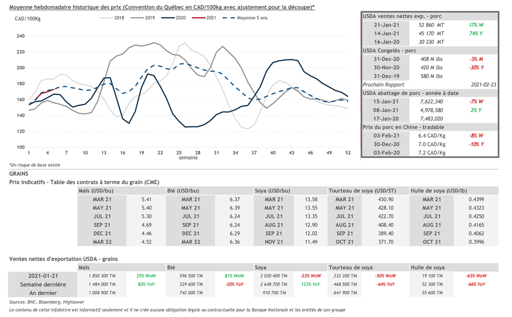 • 4 février : USDA — Ventes nettes d’exportations pour les grains et le porc