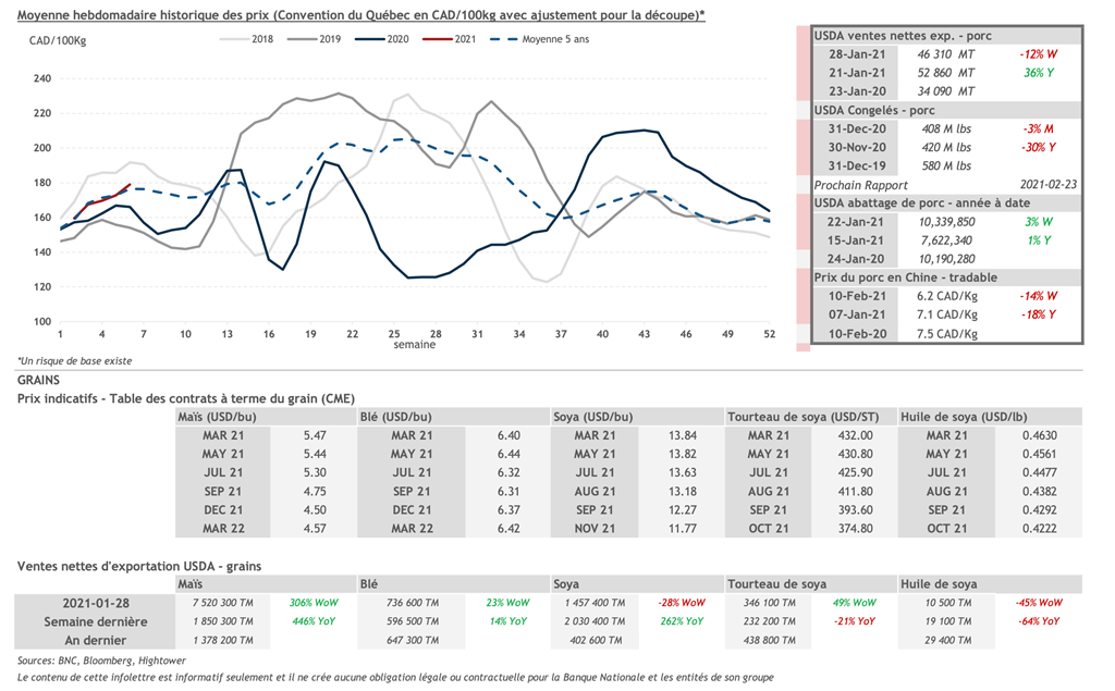 • 11 février : USDA — Ventes nettes d’exportations pour les grains et le porc