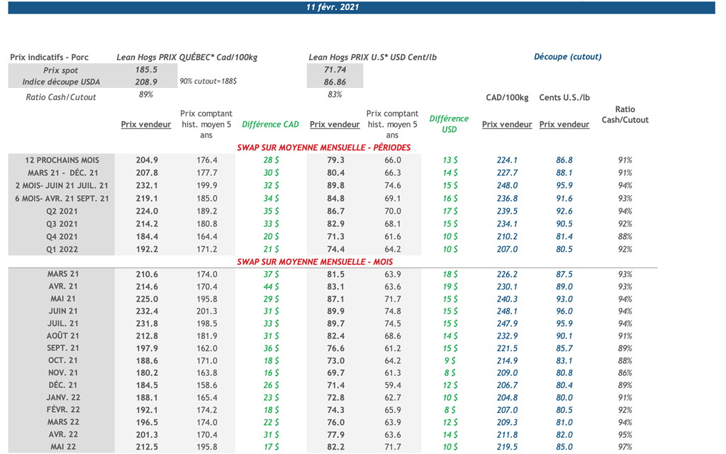 • Les contrats de porc étaient en hausse hier pour toutes les échéances, jusqu'au mois d'août-21.