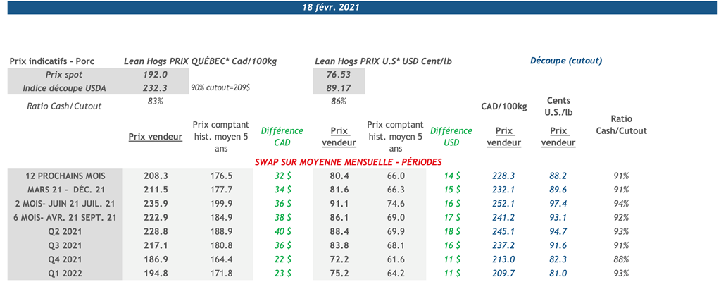 • Les contrats de porc ont terminé la journée dans le rouge hier à l'exception de de août-21 et oct.-21 qui ont pris une légère avance.
