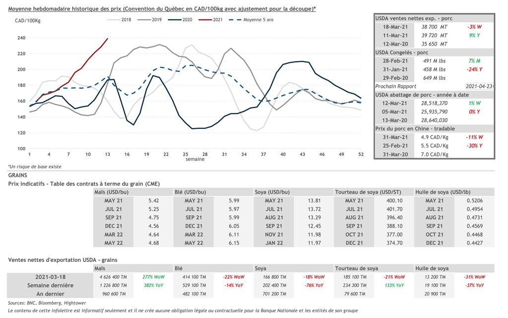 • Les autorités douanières chinoises auraient retiré l’entreprise canadienne Aliments Lucy Porc de sa liste de fournisseurs enregistrés. Nous ne savons pas la raison pour le moment.