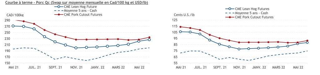 • Les données du ministère chinois du Commerce indiquent que le prix de la viande de porc a atteint un creux en 19 mois et s’est replié de 19% durant le premier trimestre de 2021. Selon Zhu Liang de Chaos Ternary Futures, les producteurs du nord de la Chine qui auraient vendu des porcs à perte à partir de la mi-janvier, moment où on observait une forte résurgence des cas de PPA. Cela aurait fait pression sur les prix locaux. Les prix du porc pourraient cependant rebondir dès mai en raison du manque de porcs prêts à l’abattage et de l’augmentation saisonnière de la demande selon Liang.
