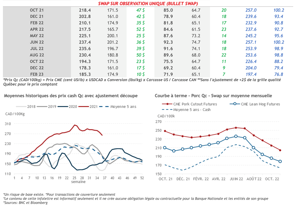 • 16 septembre : USDA — Ventes nettes d’exportations pour les grains et le porc