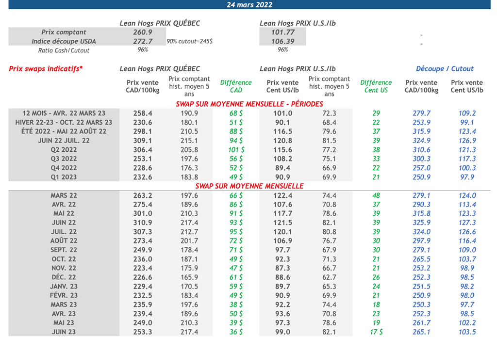 • 24 mars : USDA — Ventes nettes d’exportations pour les grains et le porc