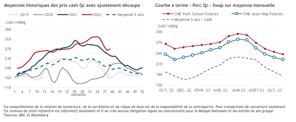 • La plupart des marchés étaient dans le rouge foncé hier, et le marché du porc n'a pas été épargné. Le contrat actif de décembre-22 a été le plus en baisse, perdant 3,40 cents US/lb pour terminer la journée à 79,40 cents US/lb, son plus bas niveau depuis janvier.