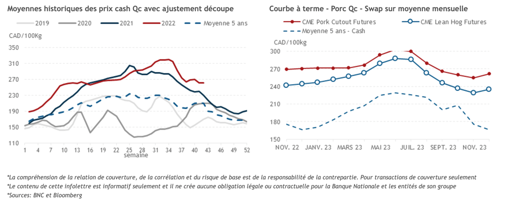 • Hier était une autre journée à la hausse pour les prix des contrats de porcs avec des gains autour de 1 cent US/lb jusqu'à juillet-23.