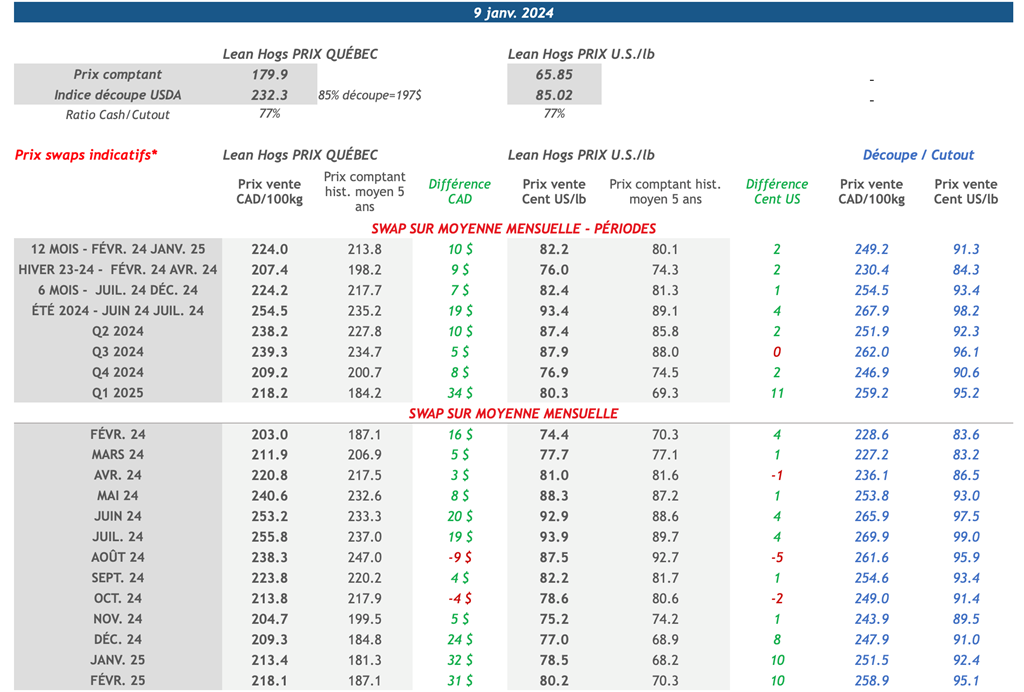 Prix swaps indicatifs - Porc - Banque Nationale