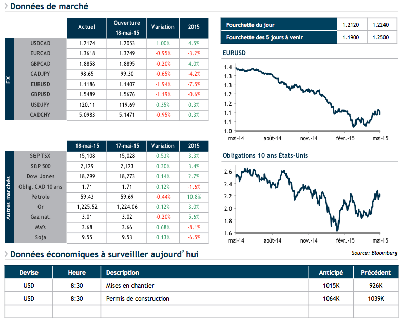 Nous surveillerons avec attention, aujourd’hui, les propos de M. Poloz qui s’adressera à 11 h 30, à la Chambre de commerce de Charlottetown. Juste avant, à 8 h 30, nous obtiendrons le pouls du secteur immobilier américain grâce aux données sur le nombre de mises en chantier et de permis de bâtir émis en avril dernier.