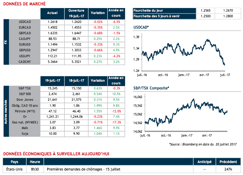 Comme diraient les sportifs, l’économie canadienne a le momentum. Hier, la publication des ventes manufacturières a révélé que les ventes des usines ont atteint un sommet post-récession. Ce qui se veut particulièrement intéressant par rapport à ces chiffres est que des gains furent réalisés dans toutes les provinces, incluant celles exposées à la production de pétrole. À la lumière de ces données et considérant la vigueur du secteur des services, nos économistes anticipent que l’économie canadienne a cru au rythme impressionnant de 2,5 à 3,0% au second trimestre de 2017.