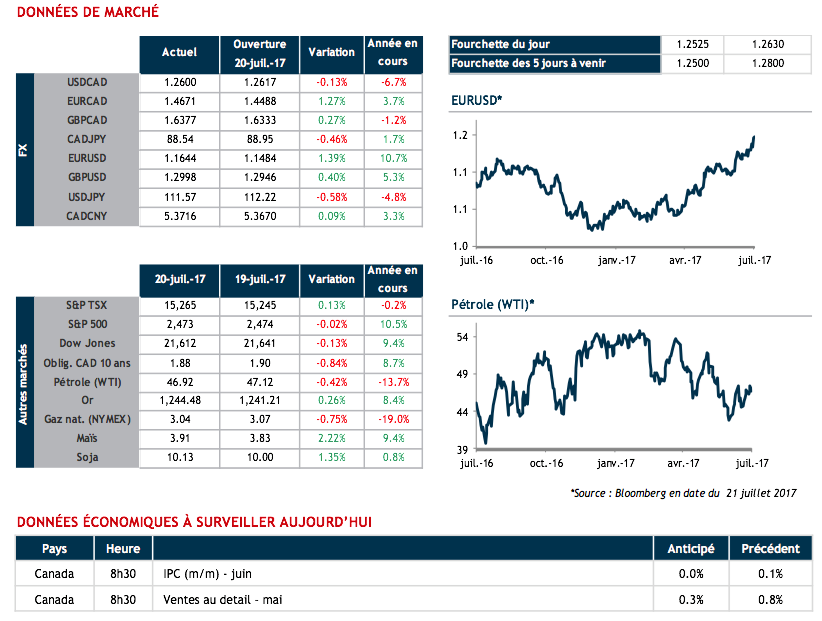 Ce matin à 8h30, les chiffres d’inflation au Canada seront publiés. Des chiffres d’inflation au-dessus des attentes des économistes pourraient gonfler les attentes de hausses de taux au Canada et contribuer à faire grimper le huard.