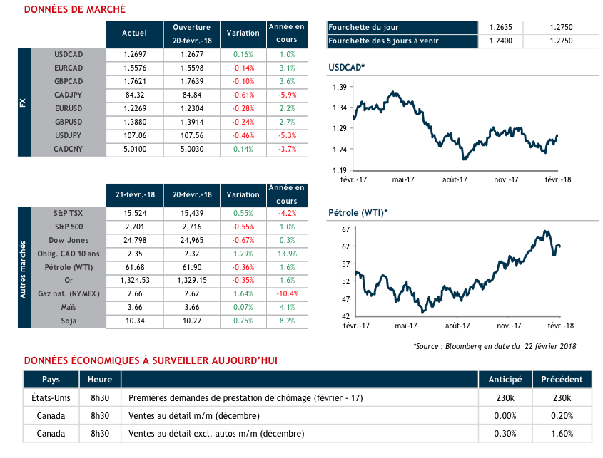 Une belle opportunité se prépare pour les entreprises qui exportent afin de sécuriser des taux attrayants pour la vente de dollars américains. Nous surveillons ce matin les demandes initiales de chômage et les indicateurs avancés aux États-Unis en plus des ventes au détail canadiennes à 8h30.