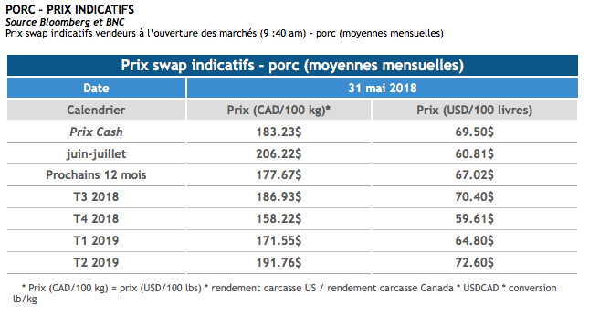 - Dans le commentaire d’hier, on discutait des chaleurs qui pouvaient perturber les gains de poids des porcs. Le USDA rapportait hier que le poids moyen des porcs destinés à l’abattage se chiffrait à 282,4 livres (semaine du 26 mai) versus 283,9 livres la semaine précédente. Le poids moyen en 2017 était de 280,8 livres.