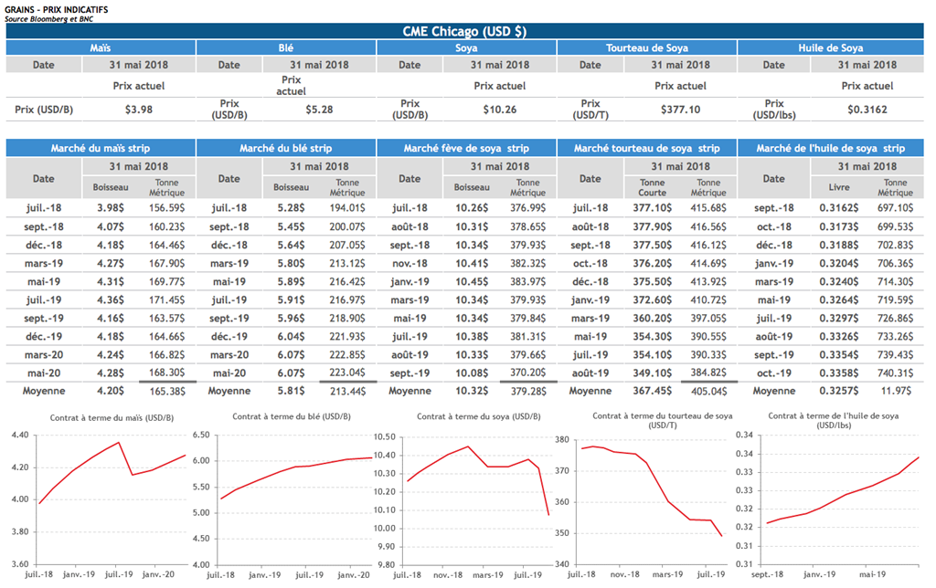 - Le marché a peut-être « sur réagi » à court terme. Le USDA devrait tout de même sortir un rapport relativement positif pour le prix des grains au cours du mois de juin (baisse des inventaires en maïs en autre).