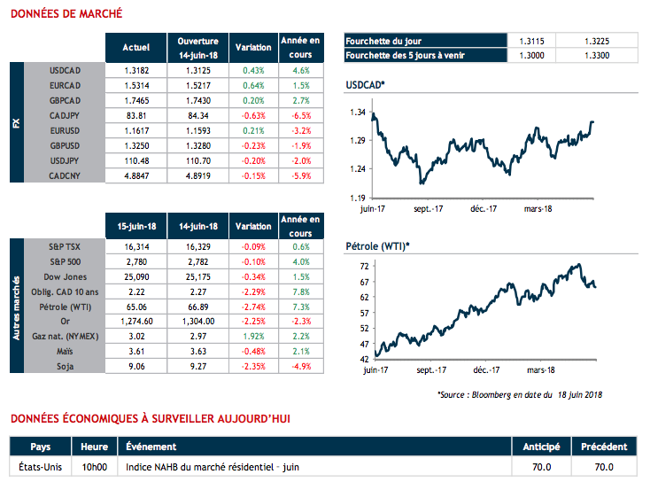 Les devises des économies concentrées dans les industries de l’énergie et des minéraux ont principalement été touchées lors de la dernière séance en raison d’une baisse généralisée du prix des métaux ainsi que du pétrole. Le brut WTI a chuté de 3% sur des rumeurs voulant que l’OPEP délibère sur une hausse des quotas de production quotidienne d’au plus 1 million de barils. Advienne que pourra, nous aurons plus de détails sur leurs intentions alors que les pays membres et la Russie se rencontreront jeudi et vendredi.