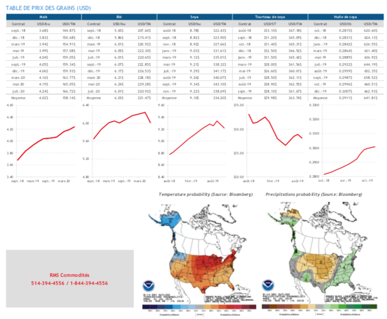 - Les bonnes conditions de récolte passées et l’intensification des guerres commerciales font craindre les investisseurs et donc attentes pessimistes à l’horizon