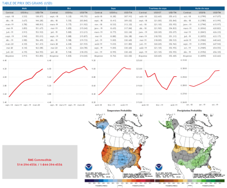 - Comme pour le soya, les rendements ont été revus à la hausse dans le maïs de 174.0 boisseaux par acre à 178.4. La hausse de la production a rassuré le marché par rapport aux inventaires finaux.