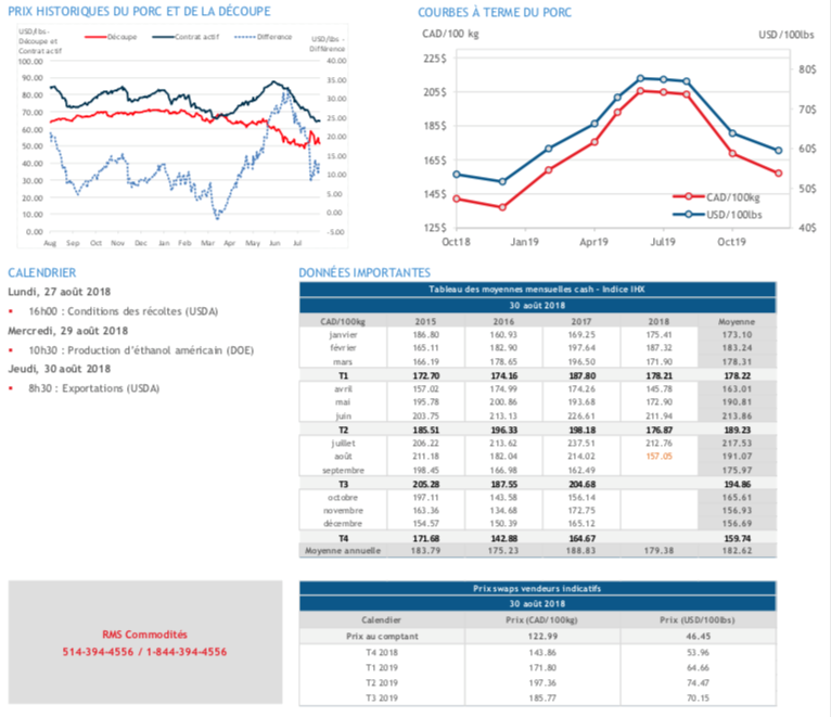 - Le marché doute la capacité des prix à remonter durant le dernier trimestre de l’année. La progression du nombre de porcs qui seront mis en marché sera difficile à ralentir. Nous sommes déjà à plus de 2.9% de hausse et on s’attend à des hausses d’abattages de plus de 4% pour le dernier trimestre de l’année.