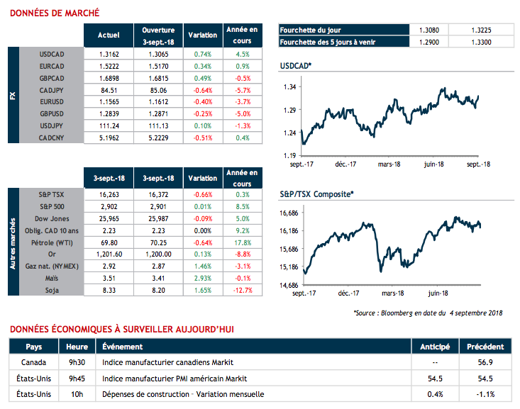 C’est dans ce contexte assez tendu que s’annonce une semaine écourtée, mais très riche en évènements : décision de la Banque du Canada sur les taux d’intérêt ainsi que la reprise des discussions sur l'ALENA demain et les chiffres sur l’emploi dans les 2 pays vendredi.