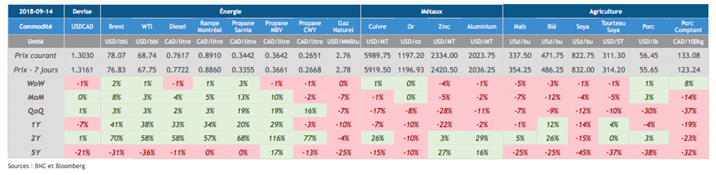 - Le rendement dans le maïs a été revu à la hausse par le USDA dans son dernier rapport mensuel, à 181.3 boisseaux par acre. Le marché continue de digérer la nouvelle. La nouvelle a pris le marché de court, en contradiction avec les résultats des derniers crop tours. Le contrat de décembre 2018 se situe aux alentours de 3.50 USD.
