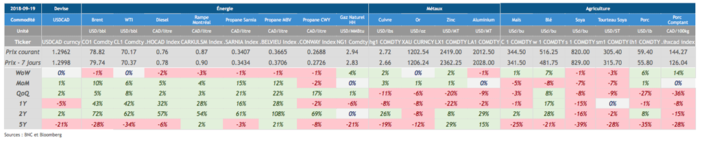 - Le prix des contrats rapprochés (Oct et Déc) ont renoués avec les sommets de juin / juillet 2018.
