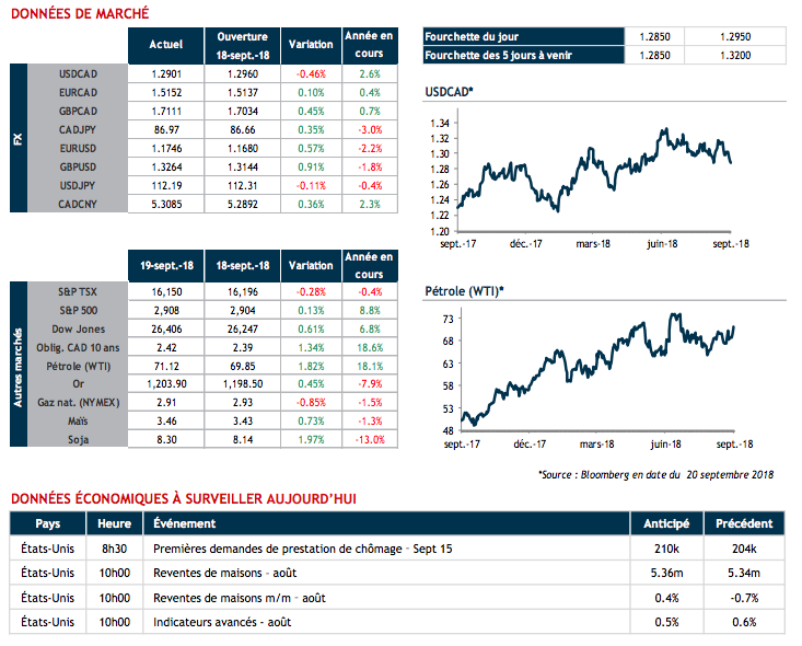 Les négociations de l’ALÉNA reprenaient hier et des désaccords importants sur des questions essentielles subsistent entre les deux pays. L’obtention d’un accord cette semaine semble de moins en moins probable ! L’échéance a été repoussée à plusieurs reprises tandis que Donald Trump continue de brandir le spectre de tarifs américains sur les exportations canadiennes de voitures. Pourtant, les élections de mi-mandat arrivent rapidement aux États-Unis et la signature d’un nouveau pacte de libre-échange serait favorable aux républicains.