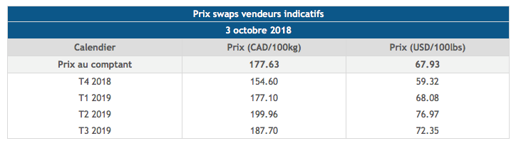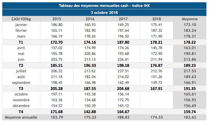 Voici les cotations sur les marchés du porc et des grains: