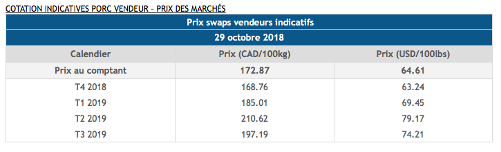 Voici les cotations indicatives et les dernières nouvelles sur les marchés du porc et des grains: