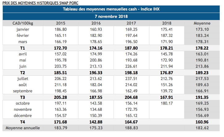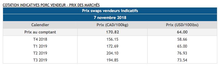 Voici les cotations indicatives et les dernières nouvelles sur les marchés du porc et des grains: