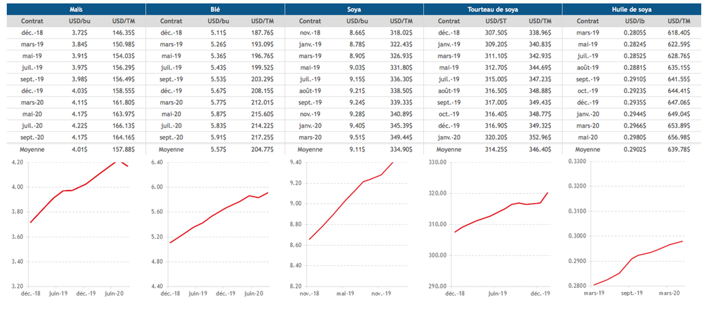 - Le prix des grains demeurent stables (baisse plus importante dans le soya) alors que les négociants attendent impatiemment les résultats du prochain rapport du USDA ce jeudi